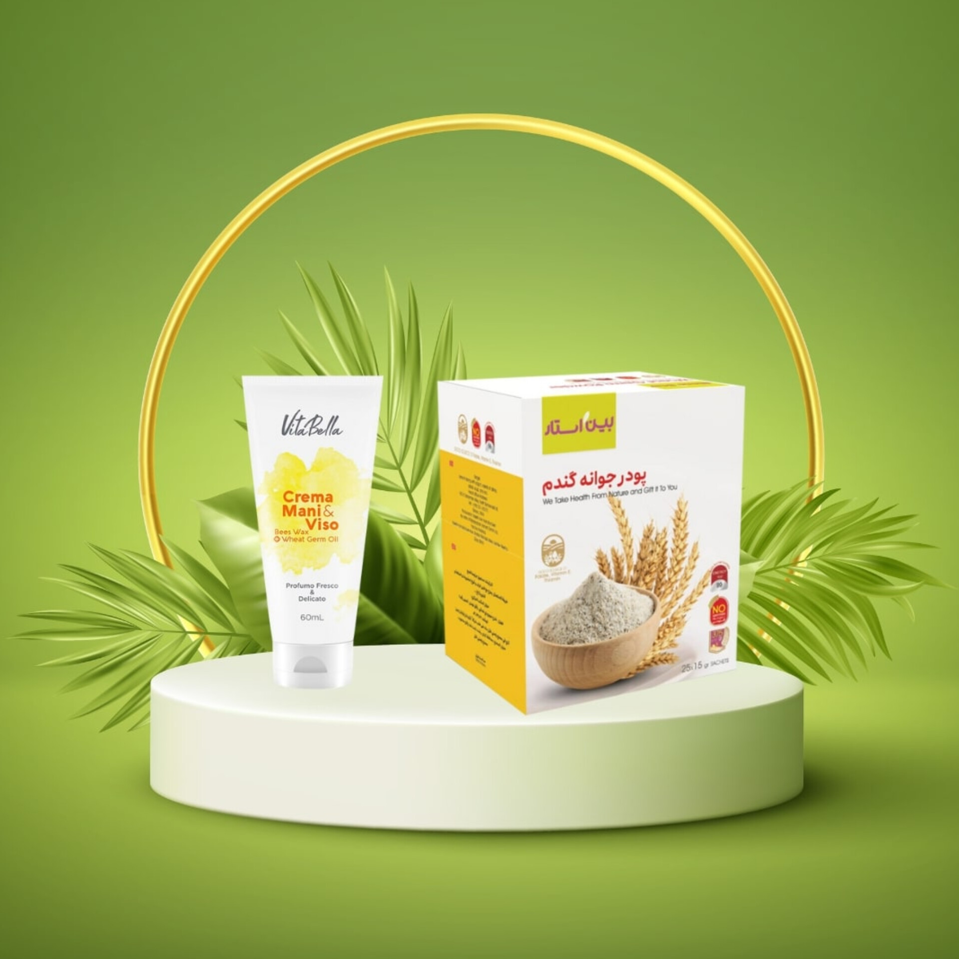 🔰 پک پر کننده صورت بین اِستار،پودر جوانه گندم 25 ساشه ای همراه با کرم جوانه گندم (ارسال فوری). ✅ گونه گُذار و پر کننده صورت. ✅ تقویت سیستم عصبی. ✅ کاهش کلسترول خون. ✅ کاهش کم خونی. ✅ کاهش استرس. ✅ کنترل دیابت. ✅️تپلی صورت بدون اضافه وزن و چاقی